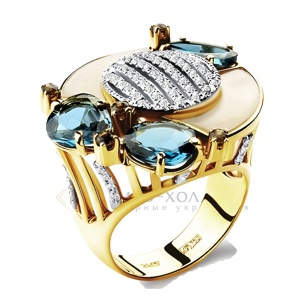 Топаз 6.0*8.0 Лонд.Блю-2шт. ;Перламутр -2шт. ;Топаз 6.0*9.0 Лонд.Блю-1шт. ;Раухтопаз Кр 2.0 -5шт. 0.750кар.;Бриллиант Кр-57(200-400) 1.0 -83шт. 0.415кар.