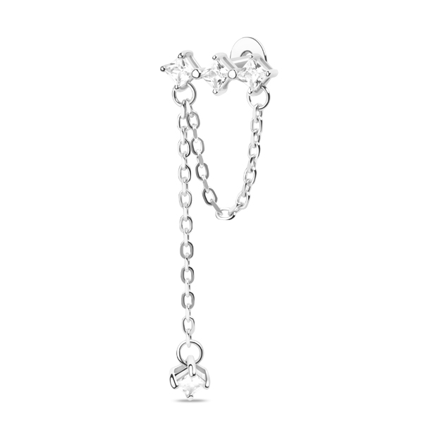 Серьга пуссет одиночный из серебра с фианитом