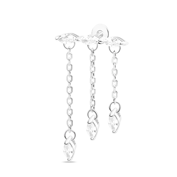 Серьга пуссет одиночный из серебра с фианитом