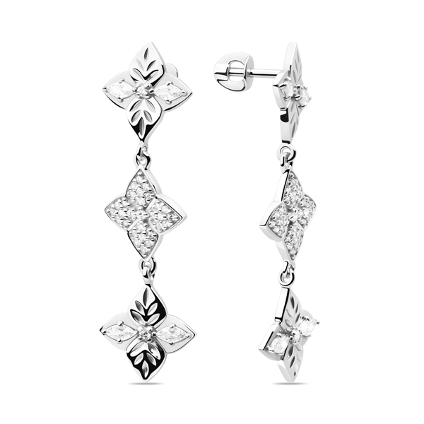 Серьги-пусеты из серебра с фианитом